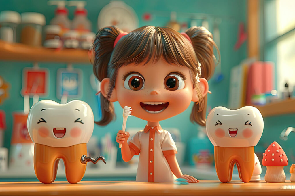 Watch Dr. Noguera in mini cartoons where teeth get superpowers—plus easy tips for parents to keep cavities away and make brushing time way more fun.